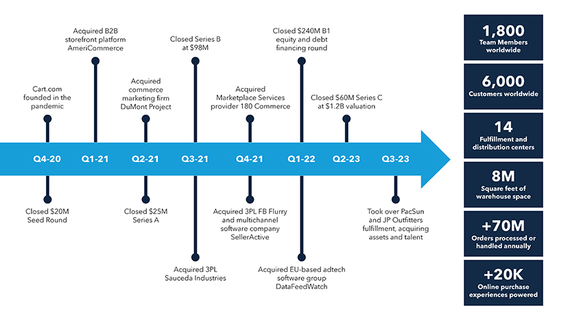 A few pages shown here are from a full stack sales deck we designed for cart.com following their new brand identity and showcasing the company’s signatures and achievements through numbers, maps and diagrams.
